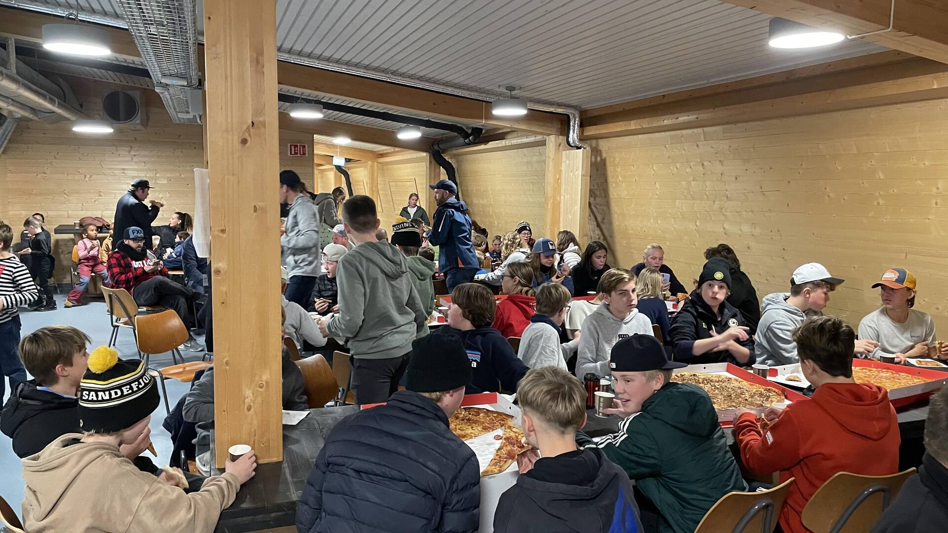 Rett etter hockeyskolen på onsdag, så var hele klubben bedt inn på pizza og brus. Det kom over 100 stk, både unge og voksne. Dette synes vi i Sandefjord Penguins er veldig gøy. Det er en super mulighet for å mingle og bli litt kjent på tvers av lagene, både for barn og voksne.